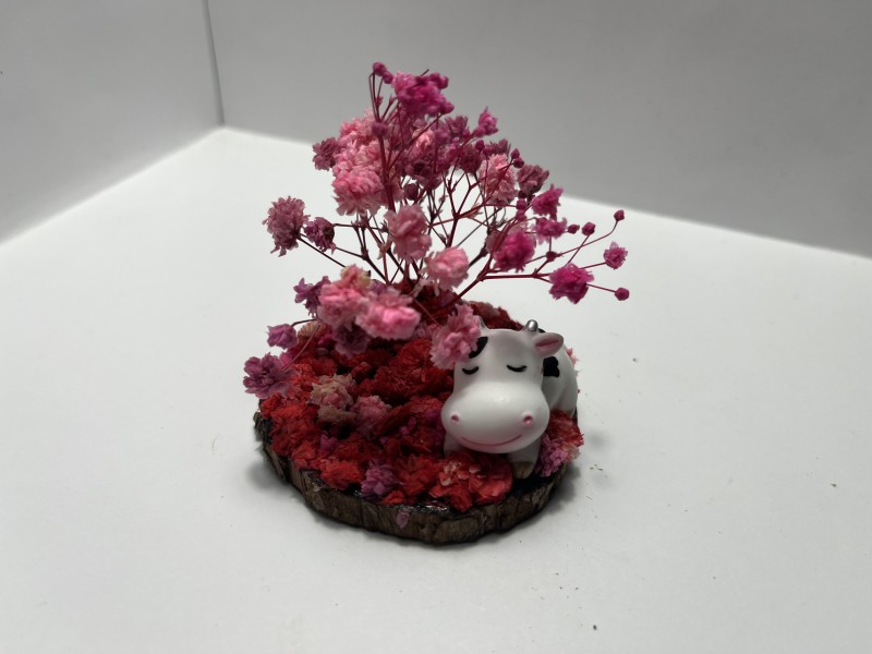 Sleeping Cow Under Pink Tree On A Bed of Pink & Red Flowers